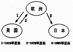 读世界汽车产业三次大转移示意图,回答53一5 4