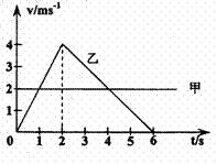 56、如图所示是甲、乙两物体从同一地点、沿同一方向做直线运动的v一t图像,则由图像可看出: