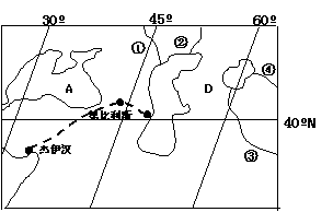 1.甲、乙、丙、丁四地中,气候特点相似的是