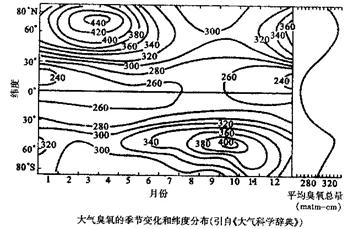 11.就季节而言,图中南北半球臭氧含量的极大值均出现在