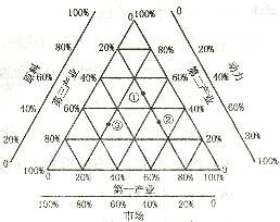 若图中①②③分别代表某国的产业结构,则下列叙述正确的是
