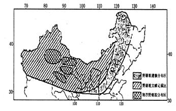 11.通过对我国野骆驼遗骸和文献记载的研究,得到其分布变迁图。从图中可以看出,野骆驼