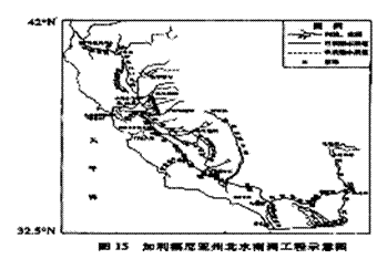 材料二:图15是加利福尼亚州水系及北水南调工程示意图。