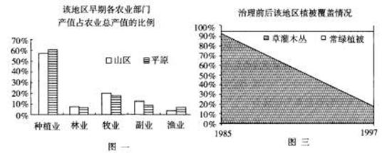(1)图一和图二反映了该地区在土地利用方面存在什么问题?这样会导致什么环境问题?(10分)