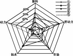 下图为“五种类型产业区位选择模式示意图”。读图,回答1-2题。