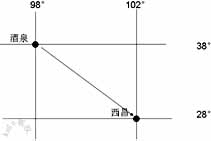 某航天专家上午11时乘飞机从酒泉到西昌参观“嫦娥一号”卫星发射,途中飞行3小时。据此和下图回答7-9题