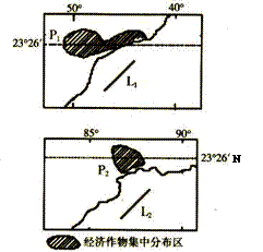 读两大陆局部示意图,阴影区P1、P2表示两类不同