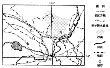 (1)a、b、c三条等年降水量线间的大小关系如何(用>、<或=符号表示)?为什么?(6分)