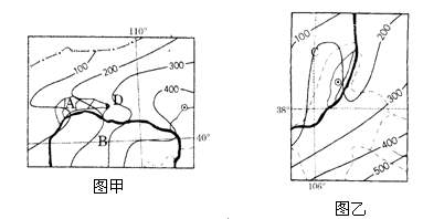 36.(36分)读“某大河流域的两幅局部图(图甲和图乙)”(图中粗黑线为河流,等值线为年等降水量线)