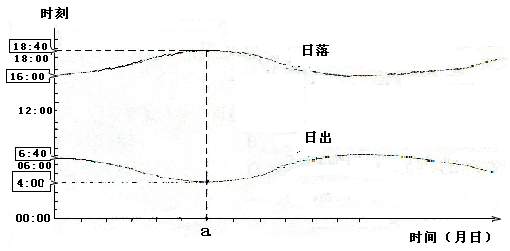 读北半球某地全年日出日落时刻(北京时间)变化曲线图,回答37题。