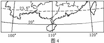 图4为某区域局部经纬线图,假设该区域全属于白天,据此回答9-10题