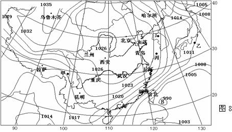 36.图8为某月某日气压(单位百帕)形势分布图,联系所学回答问题:(28分)