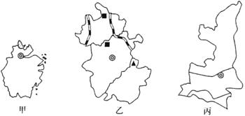 36.(36分)下图为我国三个省级行政区轮廓图,读图回答问题。
