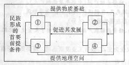 33.读图:民族四大特征关系图示,其中①、②、③、④分别代表的是 ( )