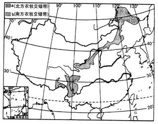 农牧交错带是指以草地和农田大面积交错分布为特点的生态系统,我国农牧交错带面积达81万平方千米,分布范围如下图所示。据此回答6-7题。