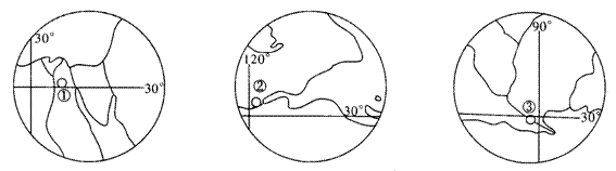 下图为纬度300附近的三个城市示意图,据此回答4-5题。