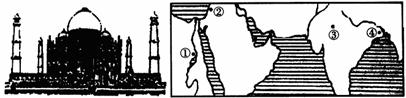 读下面两幅额图,其中左图中著名的古代建筑由白色大理石筑成。回答8-9题。