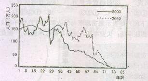 读我国某省2003年与2030年人口年龄结构比较图,完成5-6题。
