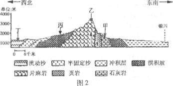 图2是我国某山脉东、西坡地质剖面图。读图回答5-6题。