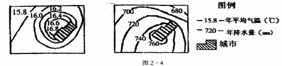 下图(图2-4),为平原上的某城市及郊区气象资料示意.读图回答1-2题。