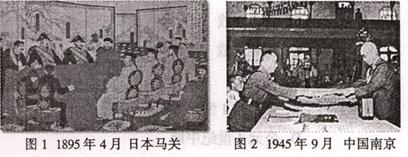 39.(26分)观察下列两幅反映中日关系的图片,结合图片提供的信息回答问题。