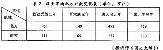 影响表2汉代至宋代南北方户数变化的主要因素是