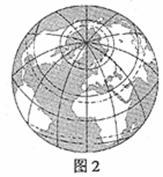 图2所示为以38°N、0°为极点的陆地相对集中的“陆半球”(另一半球为“水半球”)。读图回答第5题。