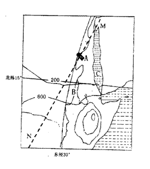 (36分)下图为世界某一区域简图,MN表示昏线,与30°E经线所成的角为 ,读图回答下列问题。