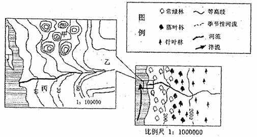读下面某地区自然景观分布以及Q区域的等高线图,回答8~11题。