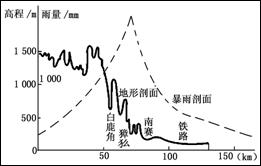 邢台市地处河北省南部,太行山脉南段东麓,华北平原西部边缘。下图为邢台地区的一次特大暴雨剖面图,图中降水最多的地区海拔高度约为