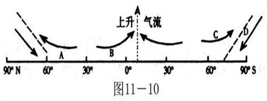 (3)C气流来自___________气压带, C气流与D气流相遇后向上爬升的原因是________________________________________________。