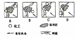 从环境效益考虑,下左四幅图中城镇工业布局合理的是( )w.w.^w.k.s.5*