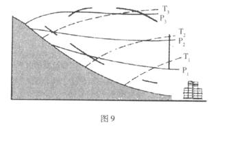 (2)图9为“成都西北部某地某时刻气压和气温分布图”(图中实线为等压线,虚线为等温线)。写出P1、P2、P3值的大小关系;判断此时是白昼还是夜晚;并在黑粗线上标注箭头,表示大气环流方向(请画在答题纸上)。(6分)