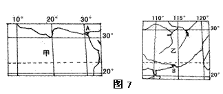 37.(24分)图7是甲、乙两区域示意图, 读图回答问题。