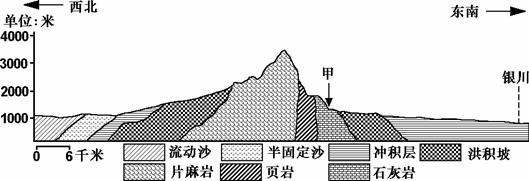 图4是我国某山脉东、西坡地质剖面图。读图,回答6-7题。