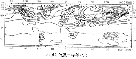 (2)图中A到C处气温年较差变化很大,原因可能有哪些?