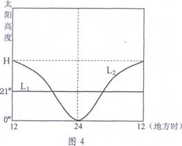 图4中Ll、L2分别表示24小时内甲、乙两地太阳高度的变化状况,甲地太阳位于正北