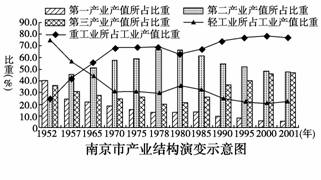下图为南京市产业结构演变示意图,读图回答1-2题。