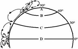 (3)B、C两气压带之间的风带为 ,请在图上用箭头表示出该风带的风向。