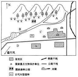 (3)该城镇要建一休闲疗养院,在图中A、B、 C、D中哪处选址最好?为什么?(10分)