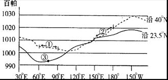 右图是某月份海平面平均气压沿两条纬线的变化图,回答5-6题。