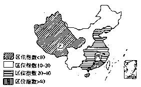 读“我国区位指数分布图”,回答3-4题: