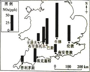 C.[选修6--环境保护]氮氧化合物(NOX)主要是由汽车等交通工具排放的一种大气污染物。下图是2004年夏季,英国南部定点测算的24小时内空气中氮氧化合物的含量![]()