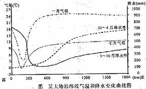 26.该大陆在图示纬度带东、西两岸气温和降水特征及其主要成因是