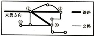 下图为某地区城镇及道路交通网络规划图。在图中①、②、③、④四点中,计划建设两个商贸中心,较为合理的设置是