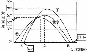 下图为三个小组同一天分别在北京(40°N,116°E)及另外北半球两地观测的太阳高度曲线图,他们利用该图及北京的经纬度推算另外两地的经纬度。完成9-11题。[HTSS]