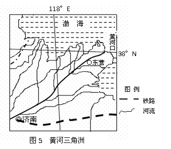 39.读黄河三角洲示意图(图5)及相关材料,完成下列各题:(60分)