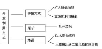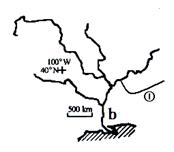 (3) 下表内容是图b中①河流域早期的开发利用情况,简述这种开发利用方式对地理环境的影响。(10分)