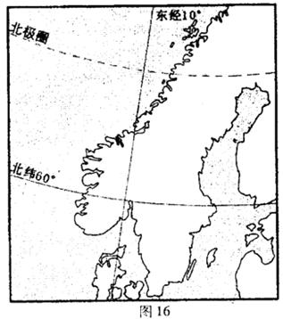 读世界局部区域图(图16),回答下列问题。