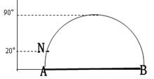 图1 中纵轴表示太阳高度,AB为晨昏线,ANB为经线圈的一部分,其中N为北极点,经线NA为80°W. 据此回答1-2题.